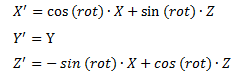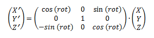 Rotates a geometry, an Angle (in radians), around the Y axis. In the following table transformation matrices and equations to transform the vertices are shown.