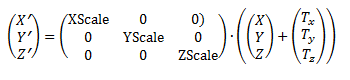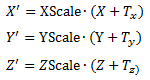 ST_TransScale (geomA, Tx, Ty, Tz, Xscale,Yscale,Zscale) is an abreviation for the method: ST_Affine(geomA, Xscale, 0, 0, 0, Yscale, 0, 0, 0, Zscale, Tx*Xscale, Ty*Yscale, Tz*Zscale) |